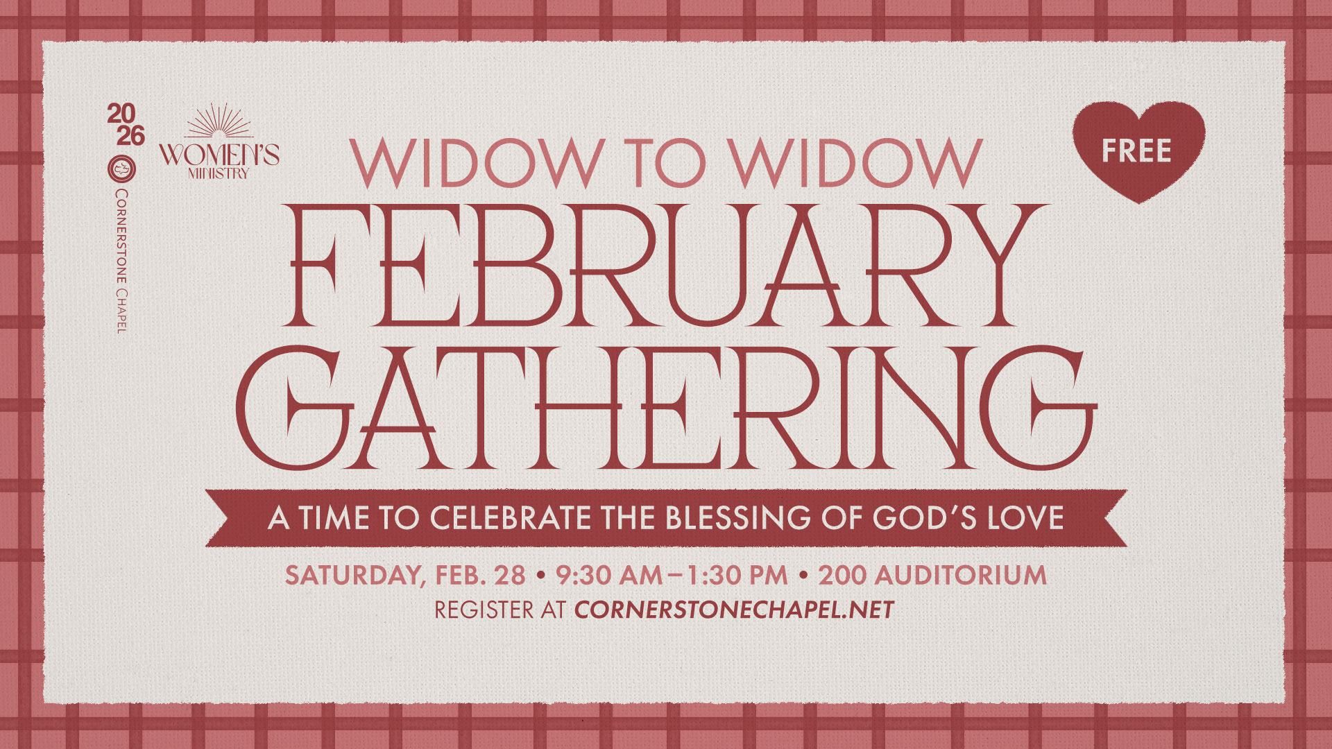 If this is your first time attending Widow to Widow, please email Sue at widowtowidow@cornerstonechapel.church after registering for more info about the group.