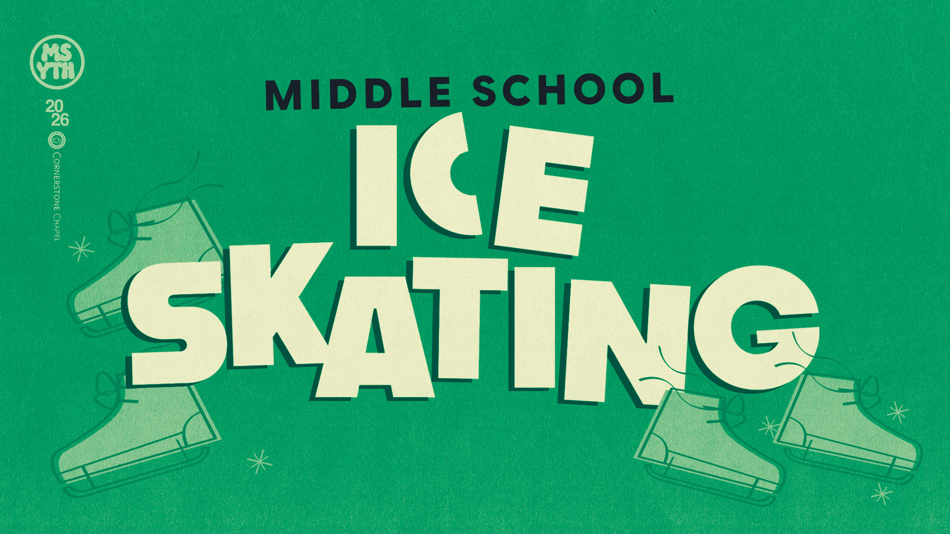Middle School Ice Skating Night: Middle schoolers, we invite you to join us for an evening of ice skating, fellowship, and fun!